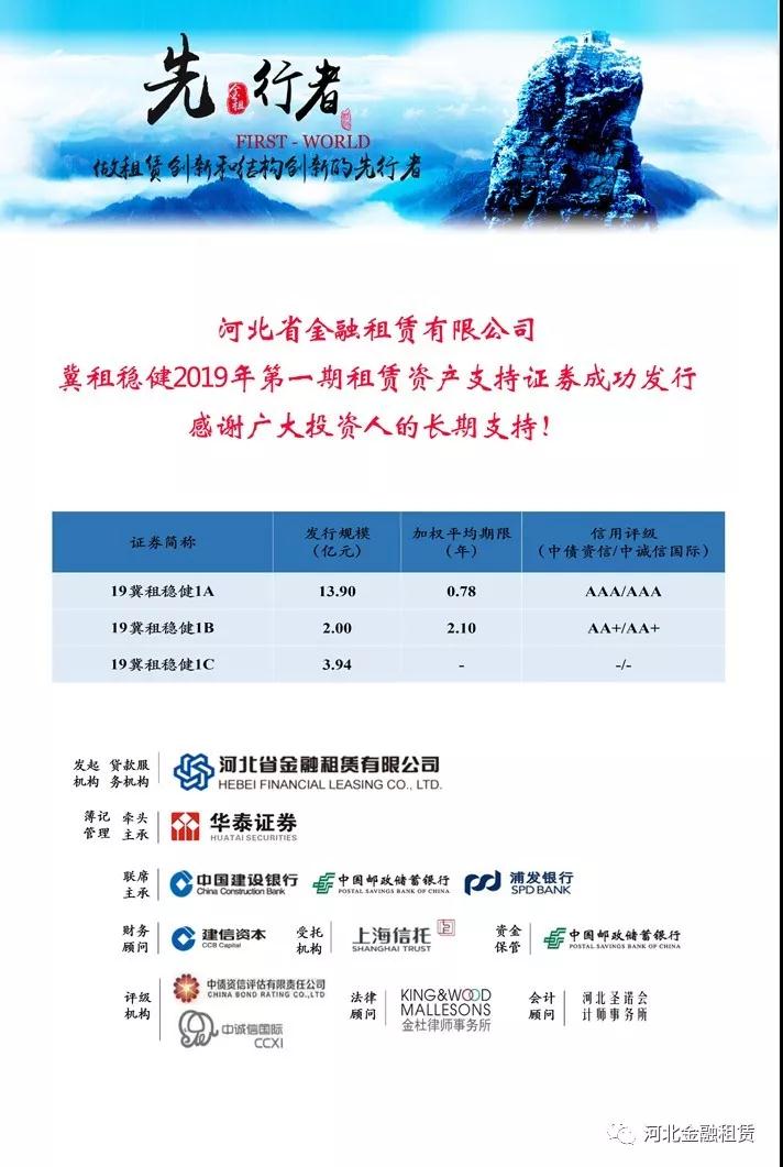關注 | 河北金租19.84億元資產證券化產品成功發行